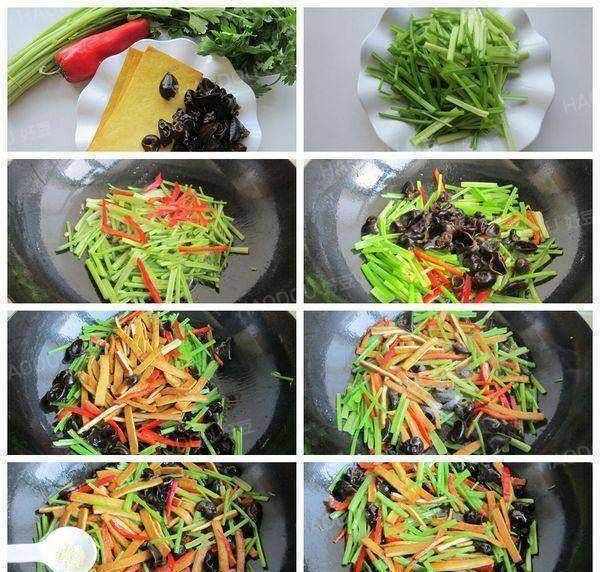 《毛芹菜木耳炒香干》那这道菜就属于懒人了。不到10分钟就可以享用一盘香喷喷的懒人菜。