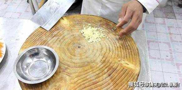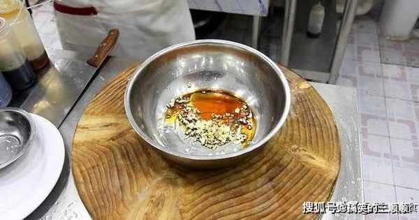 3.现在,我们开始做拌料,把大蒜倒入盆中,加入