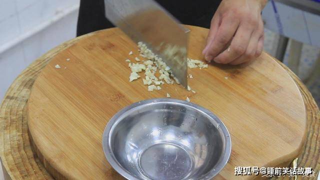 大蒜一把,拍扁剁成蒜末。