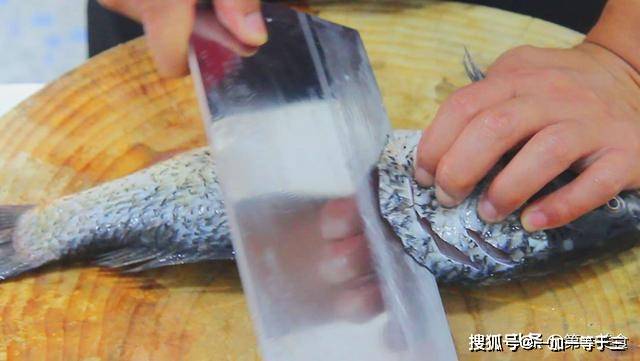 首先我们准备一下食材:处理干净的鲤鱼一条,擦干鱼身的水分,用手压紧鱼身,免得打滑,每相隔2厘米划一刀,划至鱼骨,而不要划透。
