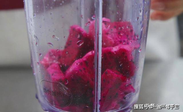 把取出的火龙果,放入到榨汁机中炸成果汁。