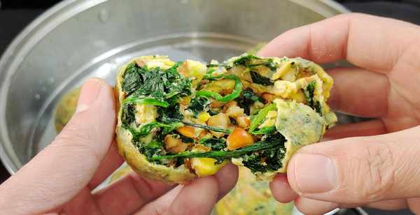 颜色金黄金黄的,看起来就很有食欲,一口下去菠菜还不失脆嫩的口感,满满的春天的味道!
