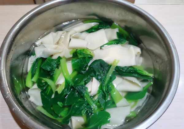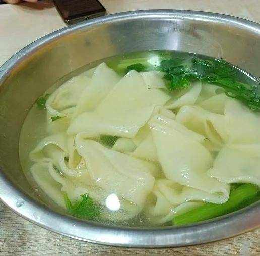 一般盛面都用的是大盆,要不起码也得是大碗。面汤里有几根面条还有几片绿菜,芹菜和青菜居多吧。这面和蘸汁都准备好了,就剩下吃了!