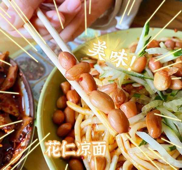 我之所以更爱花仁凉面,是因为爱死了里面的油炸花生米,有了它的加持,四川拌面立刻变得鲜活起来!