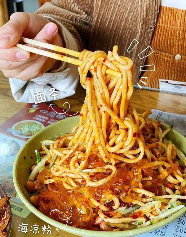 如果说10块钱一碗的四川凉面,是店里必点的招牌;那么11块钱一份的花仁凉面,简直可以直接封神了!
