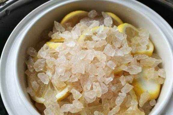 柠檬味酸甘、性平,入肝、胃经,具有化痰止咳,生津,健脾的功效。常用于暑热,咽喉炎症,咳嗽痰多、小儿百日咳等症。冰糖清热润肺,柠檬化痰止咳。二者合用能增大清热止咳的作用。用冰糖炖柠檬饮用,可起到养颜美容,滋阴润肺的作用。