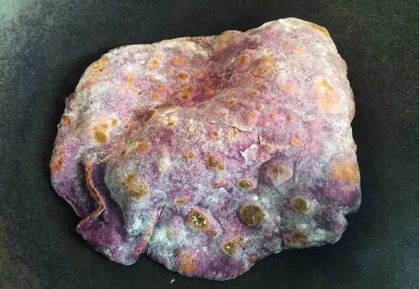 2,因为紫薯本身就是蒸熟的,荞麦面粉又被烫过了,所以烙制的时候很容易熟,一面烙至40秒左右就可以了。