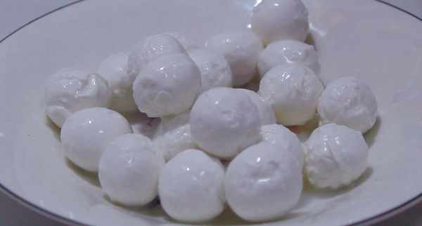 3、因为汤圆表面结了很多霜,我们可以用水泡一下,去掉表面的霜。清洗干净后,煮汤圆的时候汤圆就不会粘在一起了。汤圆清洗时间不宜过长,3~5秒即可。清洗干净后,我们取出来控水,装盘备用。