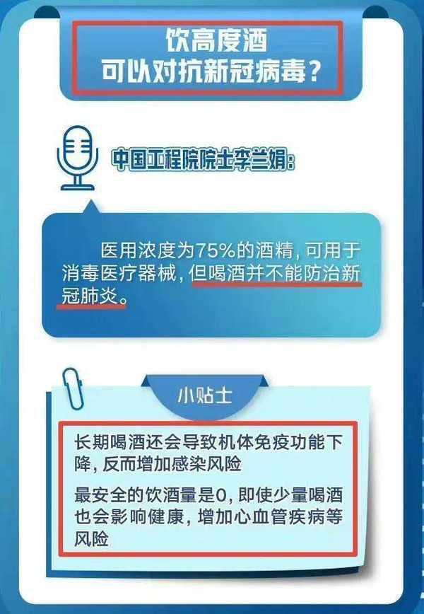 随着近日疫情防控的放开,网络上流传出了“喝酒能防新冠”、“喝高度酒能杀灭病毒”等传言,还有就是销声匿迹已久的“喝酒能防癌”的传言也再度死灰复燃。茅台酒、二锅头和伏特加等高度酒也在圈群中受到追捧。对于网络上的这种传言,有人竟然信以为真,我也真是服了!