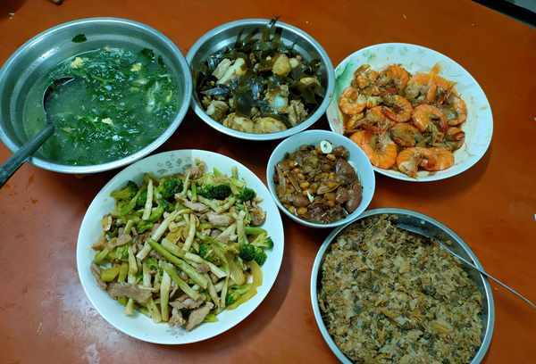 我家6口人,一个孩子才几个月大,所以实际上我家吃饭的只有4个大人和1个孩子,加上我侄子和他的朋友,今天中午一共7个人吃饭。多2个人,我多煮了2杯米饭,够了。我还添加了一些比平时更多的菜。你应该知道,我家平时都是一荤一素。既然家里有人了,还是加点菜,显得比较“值”。
