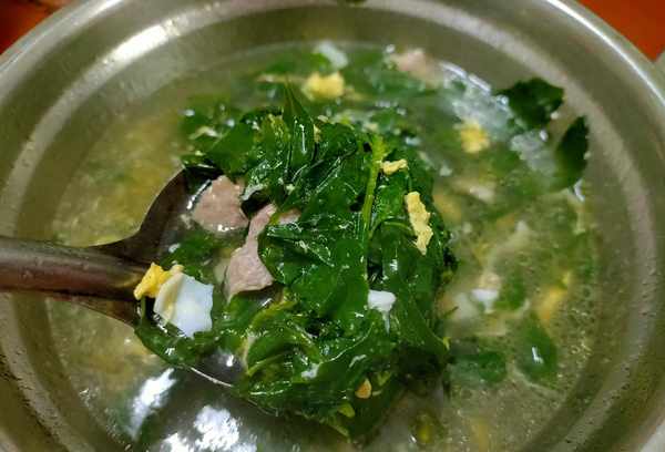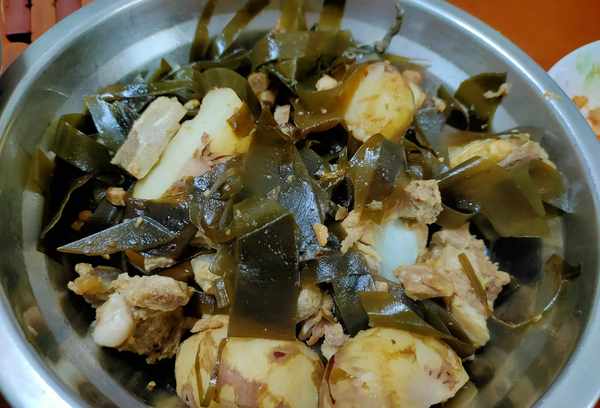 广东人煲汤,剩菜也舍不得扔掉。马蹄骨剩海带汤舍不得扔掉,当小菜吃。