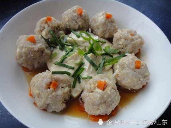 3、将藕碎和葱花倒入肉馅中混合均匀。然后取一个平盘,底部铺一层胡萝卜片,将做好的肉馅团成丸子状放在胡萝卜片上,上锅蒸制15分钟后取出。