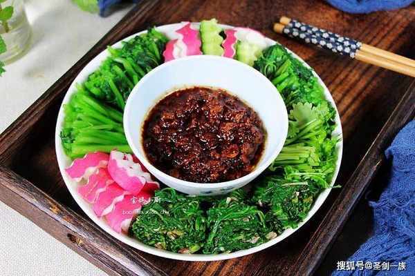 4、荠菜装盘,配一碗炸酱上桌即可。