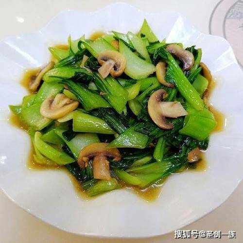 食材:蘑菇(平菇)、上海青、葱、蒜、蚝油、植物油。