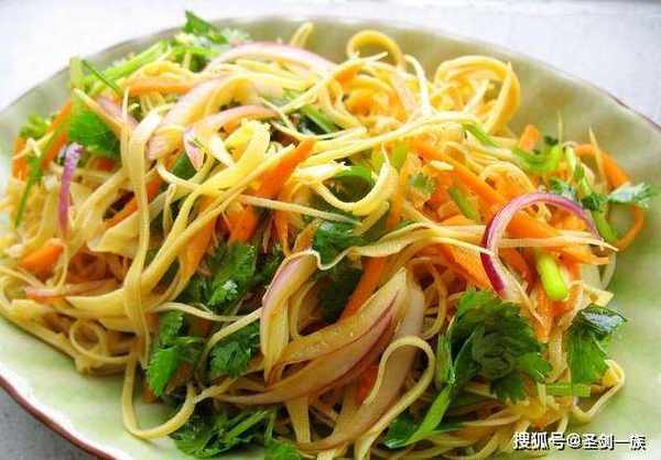 3. 配菜:胡萝卜、芹菜杆、青蒜苗、豆腐皮切细丝;