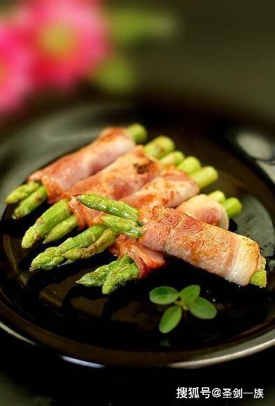 1.芦笋去掉根部,然后对半切开,培根肉也一分为二。