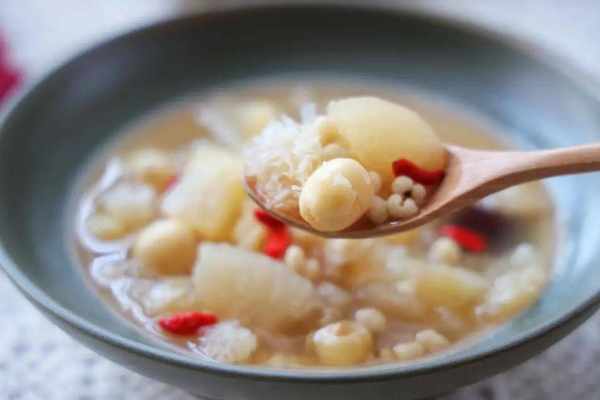 取新鲜山药200克、白果10颗、红枣15颗、枸杞子20颗、干莲子10颗。