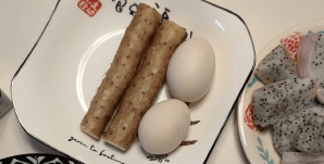先将干莲子和红枣先用冷水浸泡1小时。白果敲碎外壳。山药去皮,切成小方块用清水浸泡备用。锅内先注入清水6碗,加入白果,莲子,红枣大火煮开后转小火。