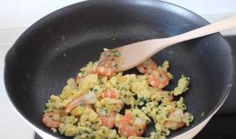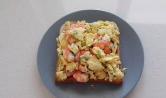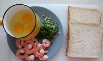 配料:面包片,鸡蛋,盐,虾仁,葱,番茄酱等