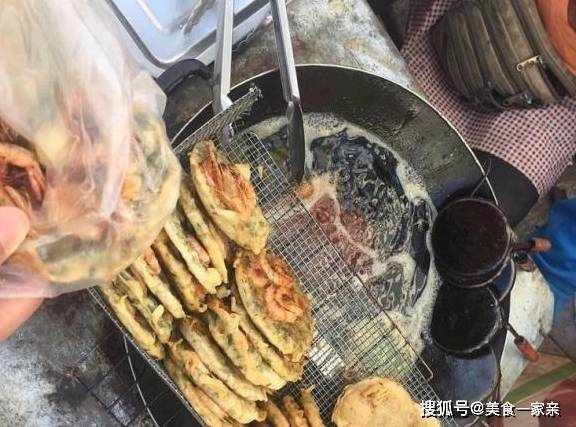 #寻找街头美食#人们对高热量的食物有着本能的热爱,所以很多街头小吃都是油炸为主,比如炸鸡薯条各种炸串还有各种油煎包子饺子。日本人把油炸食物叫做天妇罗,而且是万物皆可天妇罗,在中国更是如此,只要是能吃的东西都可以做成油炸的。各地物产不同所以街头油炸小吃也是各种各样。在广东湛江有一种街头小吃叫虾饼。