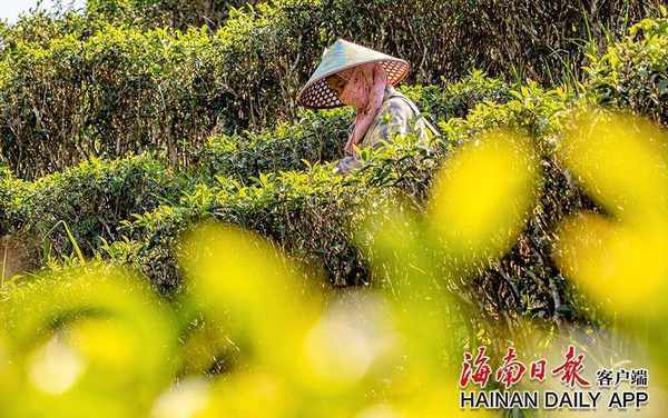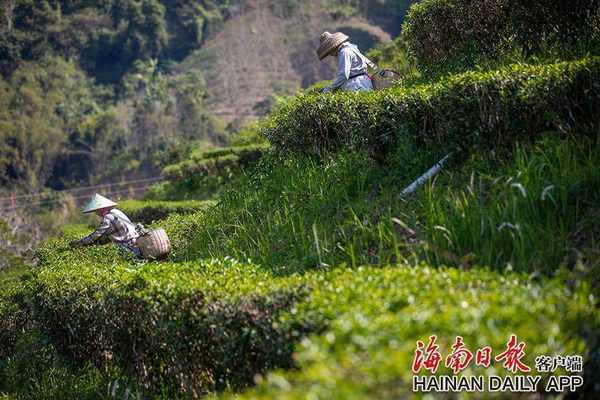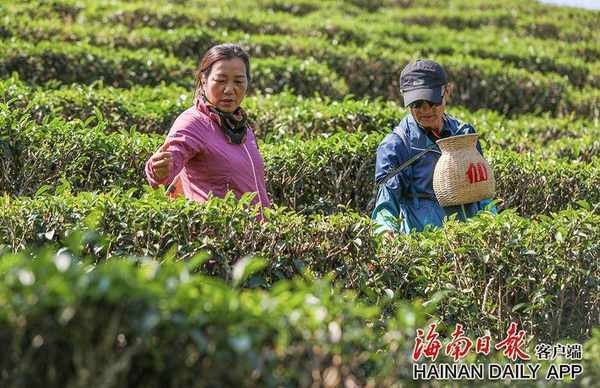 在五指山市水满乡毛纳村的茶园里,村民采摘春茶。李天平 摄