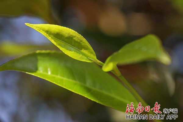 在五指山市水满乡,海南大叶种茶树冒出新叶。李天平 摄