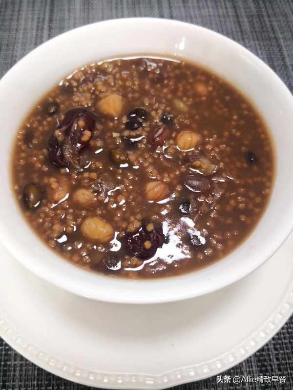 这粥配花生更有营养。没有花生,味道不会受到影响。关键是要加入这三种粥:红豆、小米和红枣。