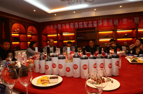 世界葡萄酒与烈酒品鉴组委会主任张胜利先生、世界中餐与葡萄酒搭配品鉴评选组委会副主任李莉女士和中国欧洲经济技术合作协会葡萄酒与烈酒分会副秘书长李秀丽女士带队美食美酒爱好者评委团与评选活动餐酒搭配专家组成员在徐涛主席的带领下进行了《世界中餐与葡萄酒搭配指南》的首次餐酒搭配的品鉴评选活动。