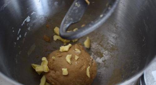 这些材料全部加入后,揉成面团,然后加入软化的黄油,可以提前取出软化。