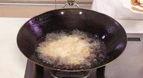 5 搅散,炸约半分钟,至其呈微黄色。