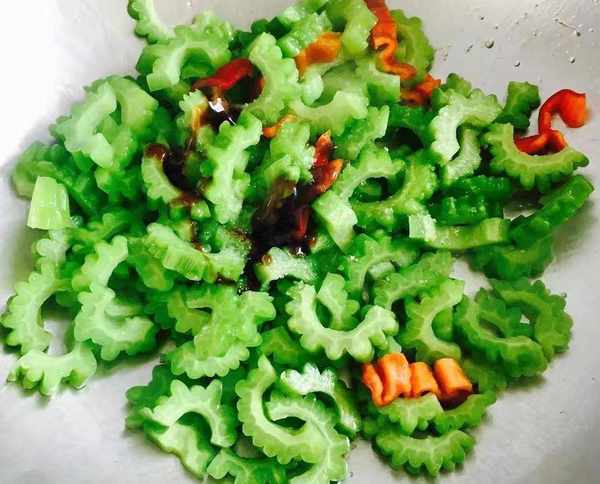 苦瓜炒鸡蛋是一道很普通的家常菜,虽然味道清苦,但是营养价值高,是一道广为流传的家常菜。主要材料为苦瓜和鸡蛋。配料为红椒,盐,料酒,白糖,蚝油,香油,植物油等等,清水苦瓜能泄去心中烦热,排除体内毒素。常吃苦瓜能增强皮层活力,使皮肤变得细嫩健美。苦瓜味苦,生则性寒,熟则性温。