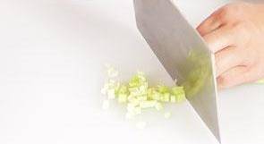 2 择洗好的芹菜切成小粒。
