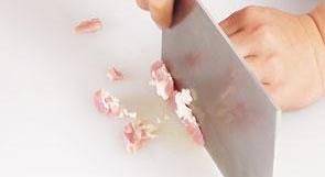 4 洗净的瘦肉切成片。