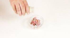 5 瘦肉装入碗中,加入适量盐、料酒、生抽。