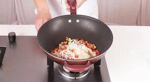 12 倒入熟圆面,快速翻炒匀。