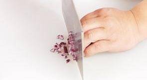 1 处理好的洋葱切开,再切丝,切粒。