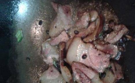 4.紧接着加入醪槽、白糖各2小勺,翻炒均匀,接着倒入1勺酱油,小火炒出香味!