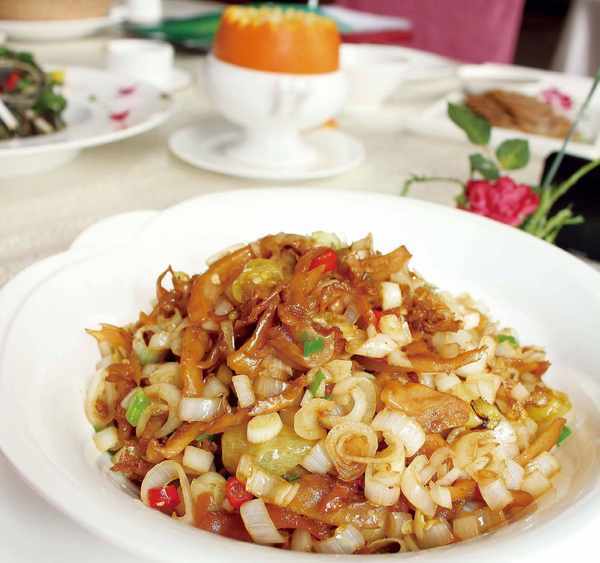 制作关键:切碎的藠头极易上色,所以不能与龙牌酱油同炒,要先用酱油炒河蚌肉,最后出锅前再将炒好的河蚌肉倒入藠头中同炒