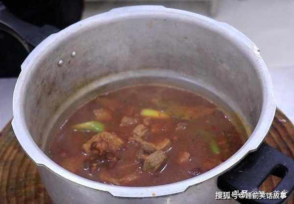 汤汁烧开以后起锅,连汤带肉一起倒入高压锅里面,开小火压20分钟,家庭小灶的话,要炖1个小时以上才够入味。