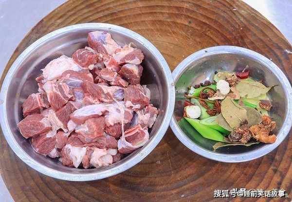 准备牛腱子肉2斤,放入清水中抓洗出里面的血水,洗干净以后切成2厘米左右的牛肉块。
