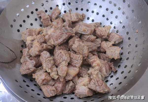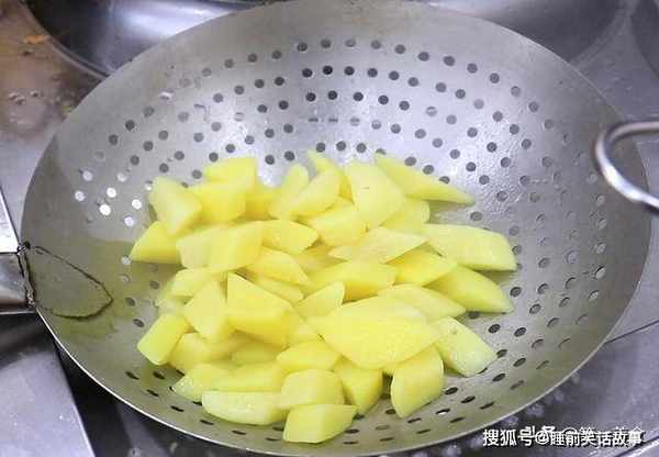 锅中水烧开以后,把土豆放入锅中,去除里面的淀粉,淀粉容易影响牛肉的颜色和口感,要提前去除,土豆煮至8成熟以后,倒出来控水备用。