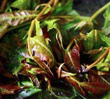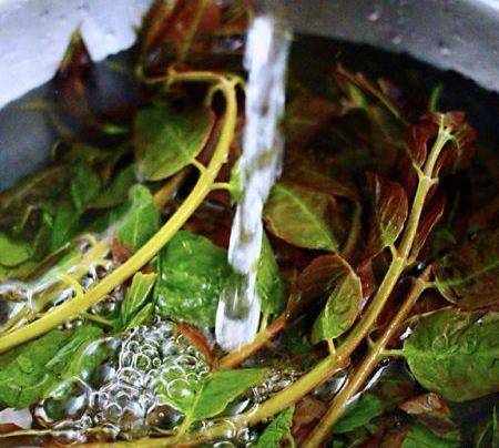 把摘干净的香椿放到盆子里后,用自来水冲洗一下后,再用清水浸泡5分钟后(记住在选择香椿的时候,一定要选择新鲜的,根状肥美的香椿,这样的香椿才是上乘的好香椿);