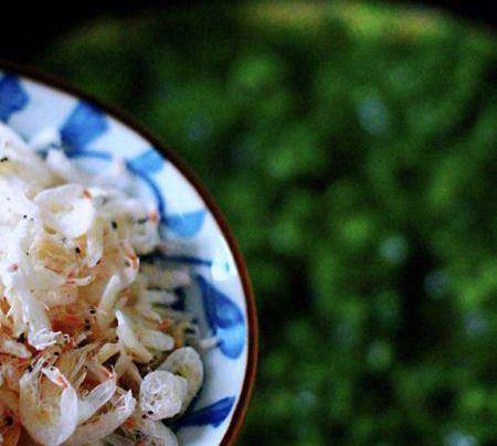 首先把食材准备好,先把香椿的外叶去干净,小香葱去皮后备用,再准备好鸭蛋和淡干虾