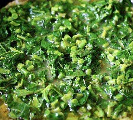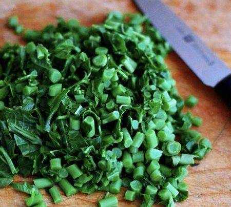 把浸泡好的香椿冲洗干净后,陶瓷炒锅中加入适量清水烧开后,加入一勺盐,把香椿进行焯水,不要焯大了,断生变色就可以了,大家一定要记住,因为香椿中的亚硝酸盐比一般蔬菜都高,所以不过怎样食用香椿,都要提前焯一下水(腌制的香椿除外,但是腌制的香椿腌制完最少一个礼拜才可以吃,这个时候的亚硝酸盐也就降到了最低点哟)