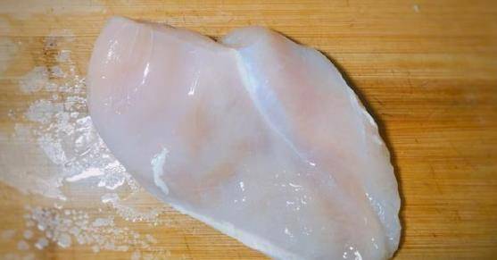 步骤:1、先将青椒切丝备用,鸡胸肉也顺着经脉切丝,一定要顺着切,不然口感会不好;