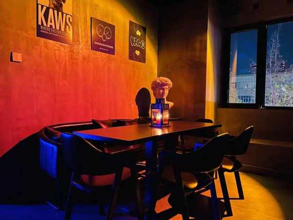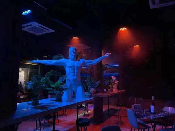 坤和Lounge Bar是一家赛博朋克风格的酒吧,古罗马雕塑、绿植等元素在这里交汇,给人一种新奇独特的感受。