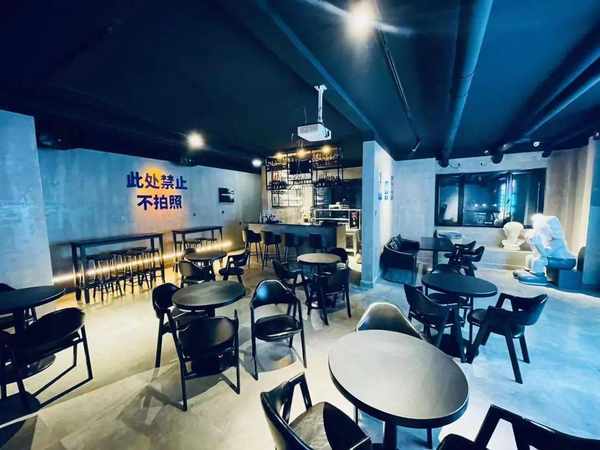 走进店内,极具工业风的沙发、未经雕琢的水泥墙面、随处可打卡的标语,处处都展示着生活中的 “艺术美”。