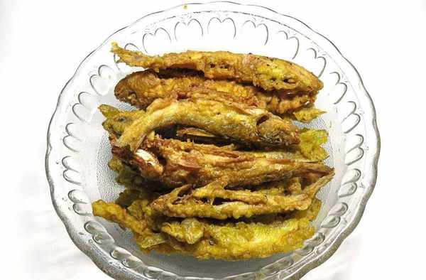 (4)油烧热后放入挂完糊的鱼,小火炸至黄色为止。