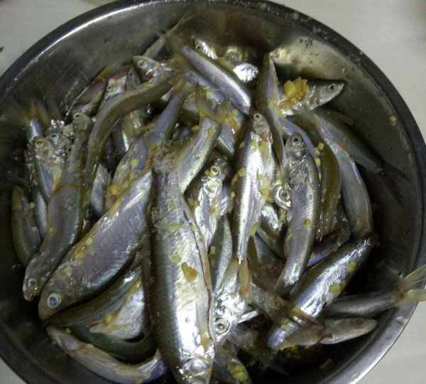 孩子喜欢吃鱼,家里面也是经常做鱼翅,平时都是直接清炖或者红烧的大鱼,婆婆去菜市场看见有卖小鱼了,就买了一些,小鱼比大鱼便宜好多,哪个卖家是自己下河去捉的比较新鲜还便宜。回家后婆婆自己弄了一下,开始先炸一下又炒了炒,结果出锅孩子吃上瘾说以后就不吃大鱼了,只吃小鱼。