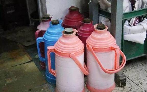 地上还放了保暖水壶,样子个个像极了小时候爷爷奶奶家的热水瓶,不由想起了童年的美好回忆。
